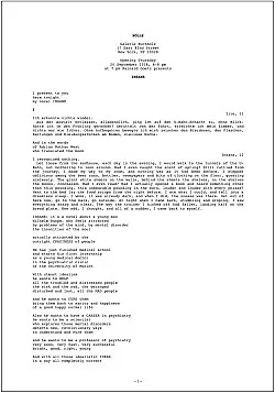 A poster with the transcript of Rainald Goetz’s presentation of the English translation of his novel “Insane” on the occasion of the exhibition opening for the group exhibition “Hölle” in September 2018 at Galerie Buchholz New York.
